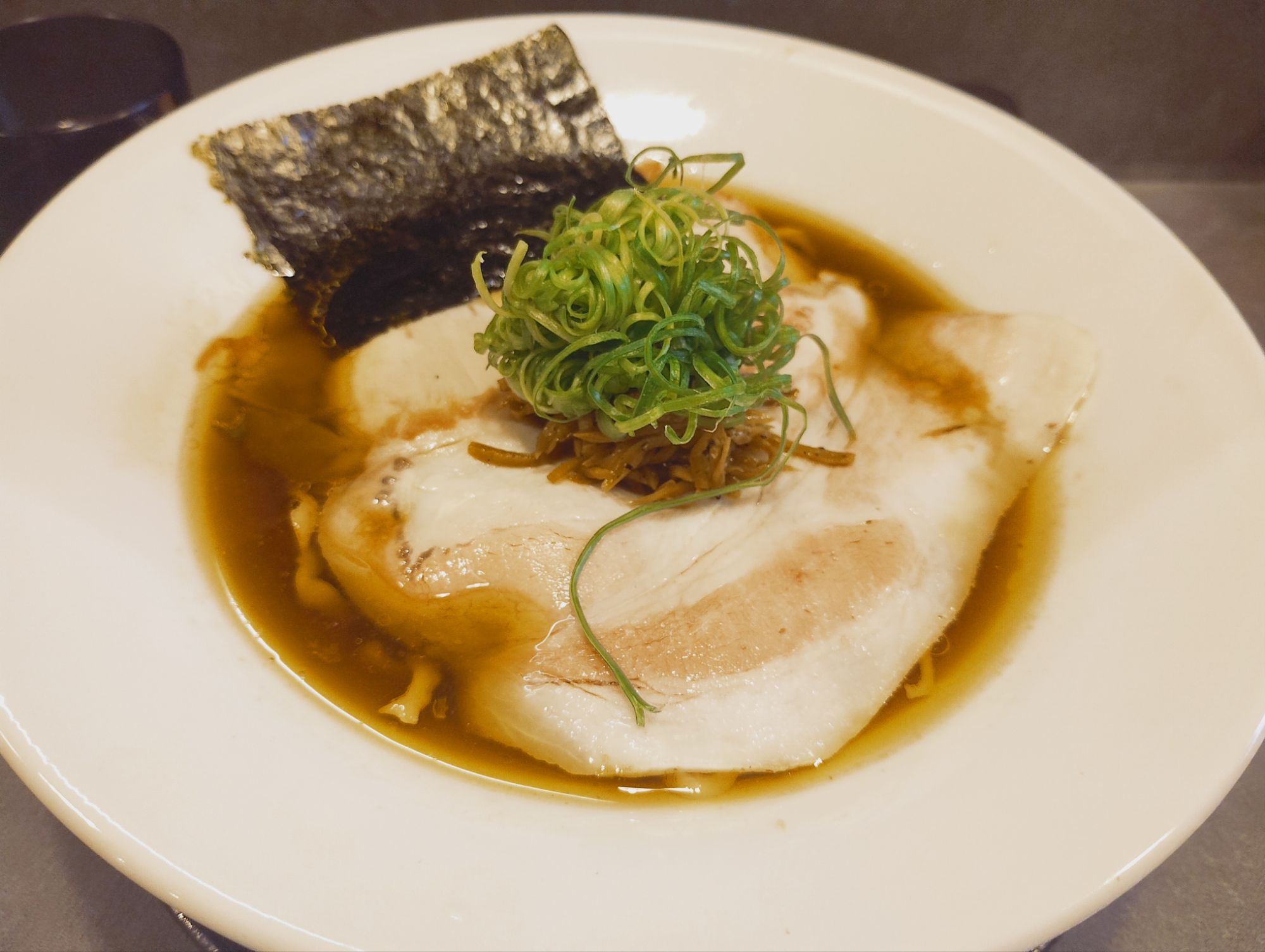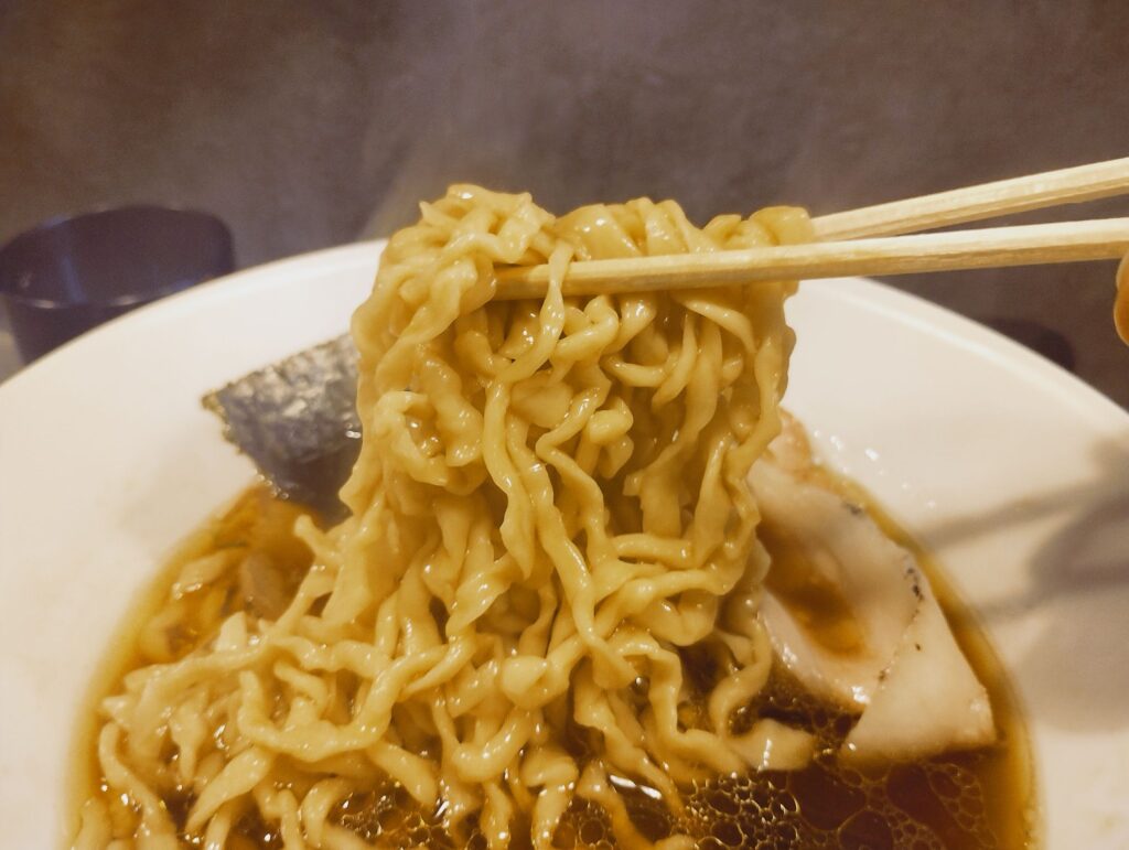 スープは深みのある醤油ベース。口に含むとまろやかな旨みとほどよい塩味が広がり、後味には優しい甘みも感じられます。力強い麺をしっかりと包み込み、バランスよく調和しているのが印象的。飲み進めるごとに旨みの層が重なり、最後まで飽きずに楽しめる味わいでした。