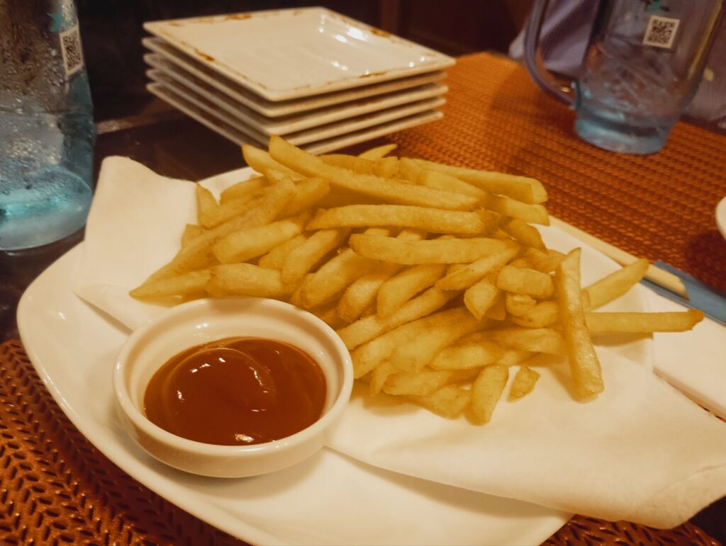 赤ウインナー焼きの懐かしい味、フライドポテトのほくほく感、そして珍味・鯛のこのわたの塩気が、お酒の旨さをさらに引き立てます。