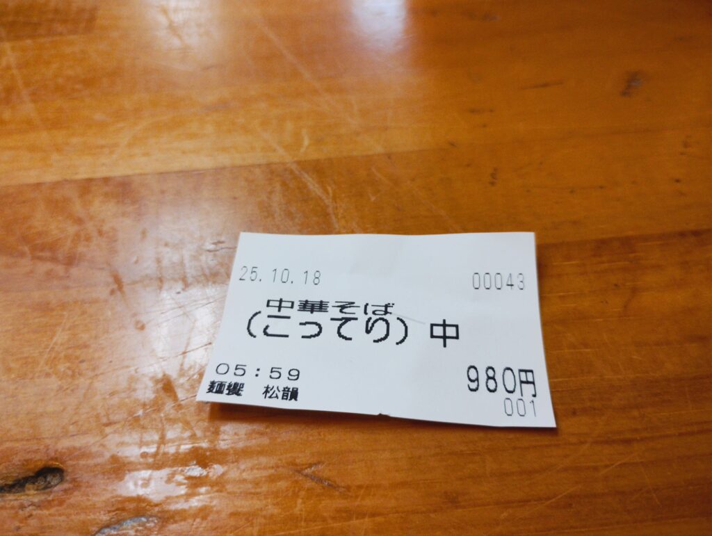由利本荘市にある人気ラーメン店「松韻」さんへ。休日ともなると早朝から行列ができる名店で、この日は開店時間の5時15分を少し過ぎ、6時に到着。幸運にも並ばずに入店できました。