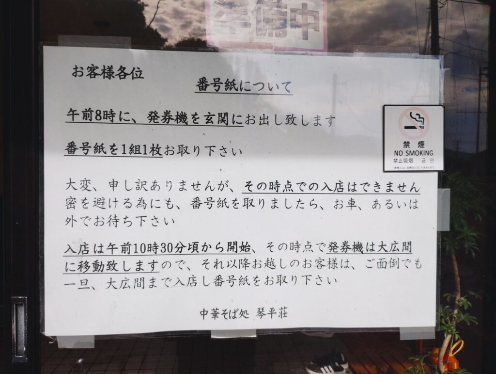 山形県鶴岡市の名店「琴平荘」さんへ。全国的にも知られる冬季限定の中華そば専門店で、この日も早朝から長蛇の列。思いつきで走って8時に到着しましたが、整理券は55番。