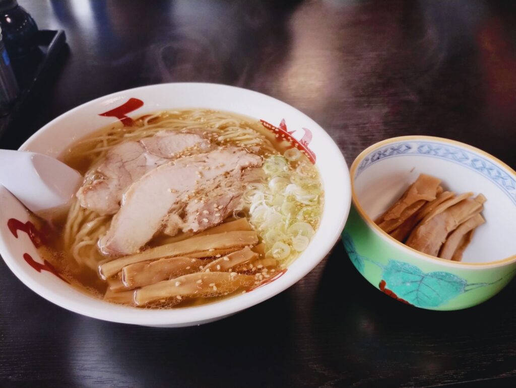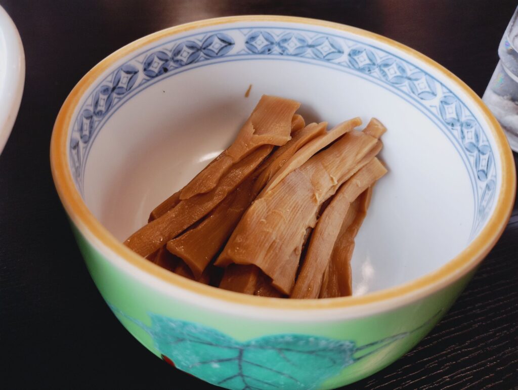 歯ごたえはしっかりありながら、絶妙な戻し加減で噛み切れるメンマの仕上がりは見事です。同席の方が分けてくれた海苔を添えると、塩スープとの相性が抜群で、思わず頷くほどのバランス。