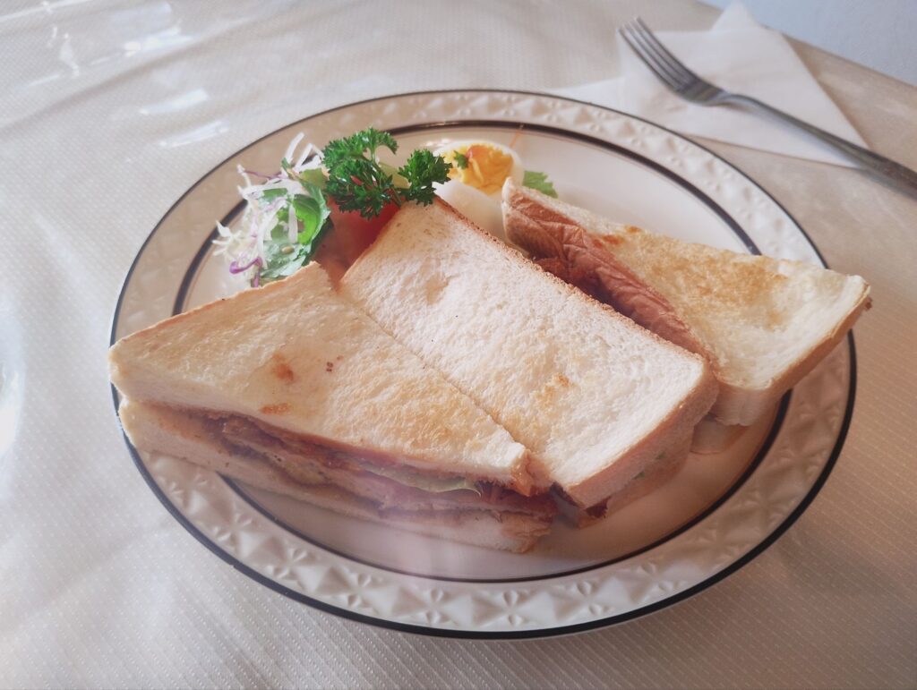 一口頬張ると、まず驚くのが食パンの焼き加減。外はカリッと香ばしく、内側はふんわりもちっと。食感のコントラストが心地よく、噛むほどに小麦の甘みが広がります。