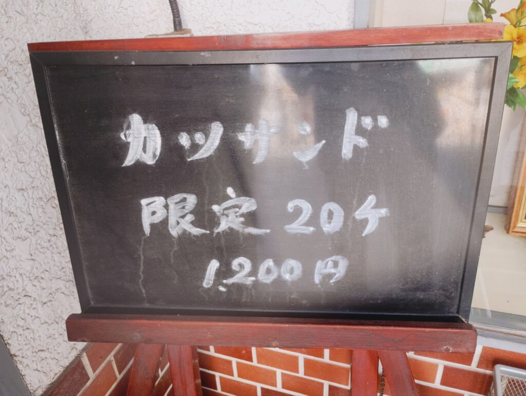 注文したのは、店の入口に掲げられていた「カツサンド」。席に着くなりオーダーしたので、他のメニューを見逃したのが少し残念でしたが、その判断は大正解でした。