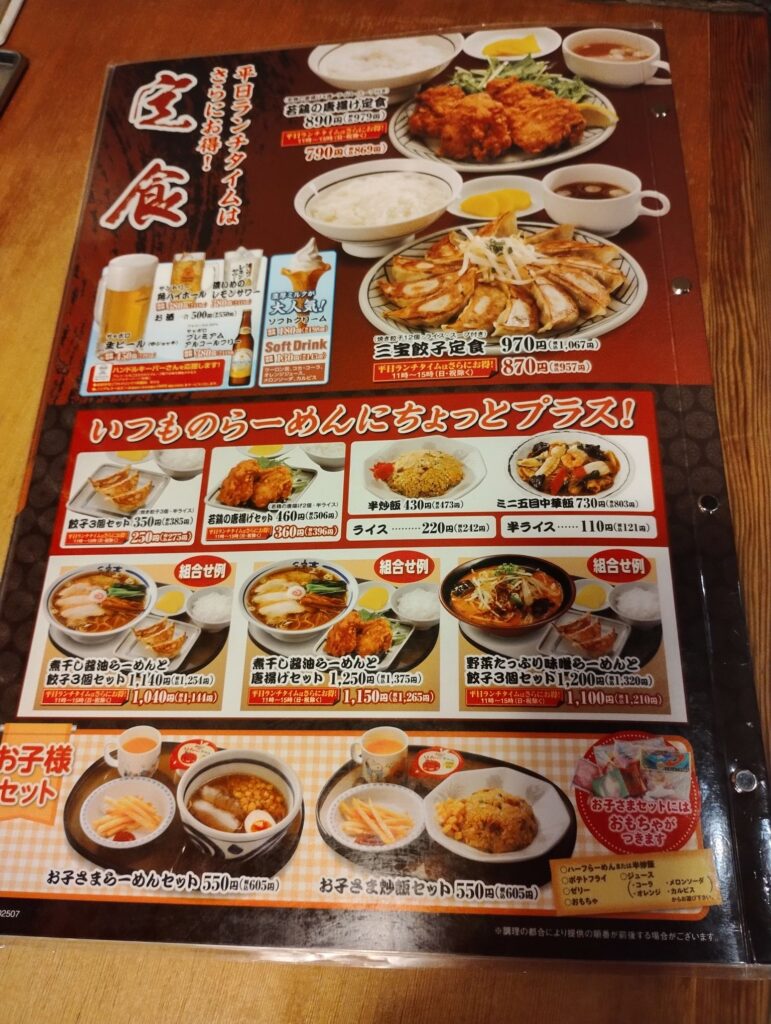 ラーメンはもちろん、チャーハンや定食類も充実しており、どれもチェーン店ならではの安定した美味しさが魅力。