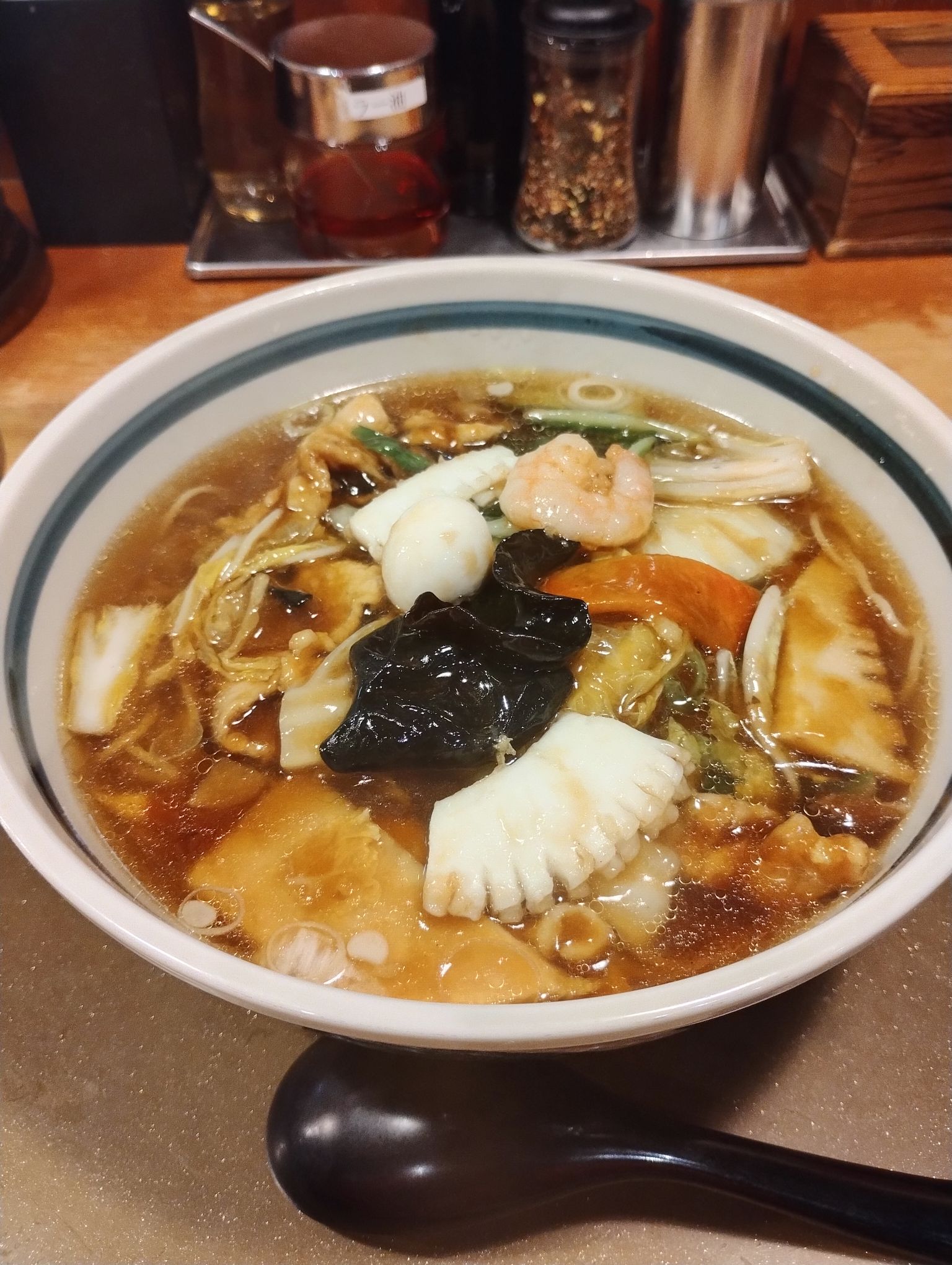寒さが増してくるこの季節、体の中から温まる「五目うま煮麺」はまさにご馳走。濃厚な旨味とやさしいとろみのスープを味わいながら、「やっぱりこれだな」と思わず笑みがこぼれます。家に帰ったら晩御飯はいらないけれど、晩酌だけはしっかり楽しみたい、そんな満足感たっぷりの一杯でした。