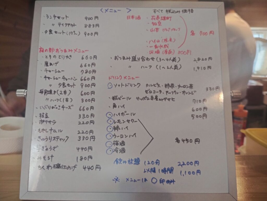 唐揚げは「外はカリッと、中はジューシー」をそのまま体現した仕上がりで、噛んだ瞬間に旨味が広がります。お酒のつまみにも良さそうだと感じていたら、実は夜営業がメインのお店とのこと。確かにお酒が進みそうな味付けで、納得の一品です。夜メニューにお酒が豊富に並んでいる理由もその場で理解できました。