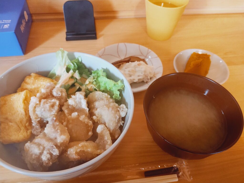 さらに驚いたのは、ご飯の美味しさ。この時期ならではの秋田の新米でしょうか。ふっくらとした炊き上がりで、唐揚げとの相性が抜群。美味しい唐揚げに美味しいお米という最高の組み合わせで、食事の満足度がさらに高まりました。