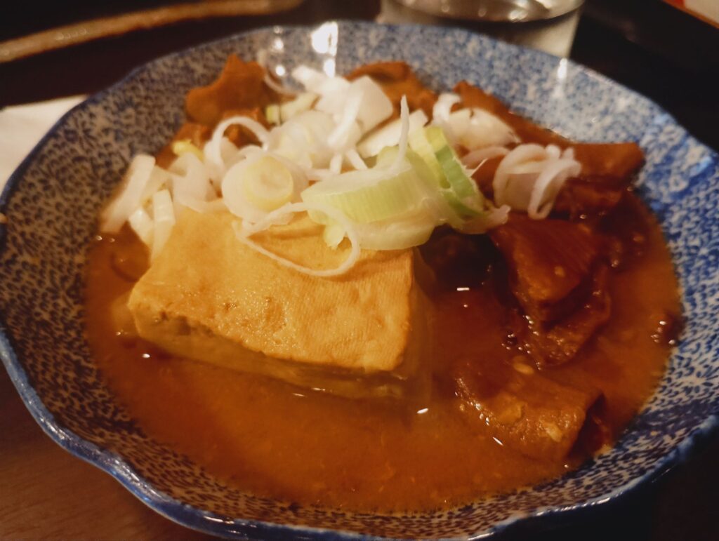 続いて提供されたのが、その日の朝に仕入れた新鮮な刺身。プリプリの弾力と清らかな香りがあり、日本酒との相性は言うまでもなく最高。さらに、もつ煮込みは柔らかく煮込まれていて、優しい甘みと出汁の効いた味噌味が体に染み渡る美味しさでした。