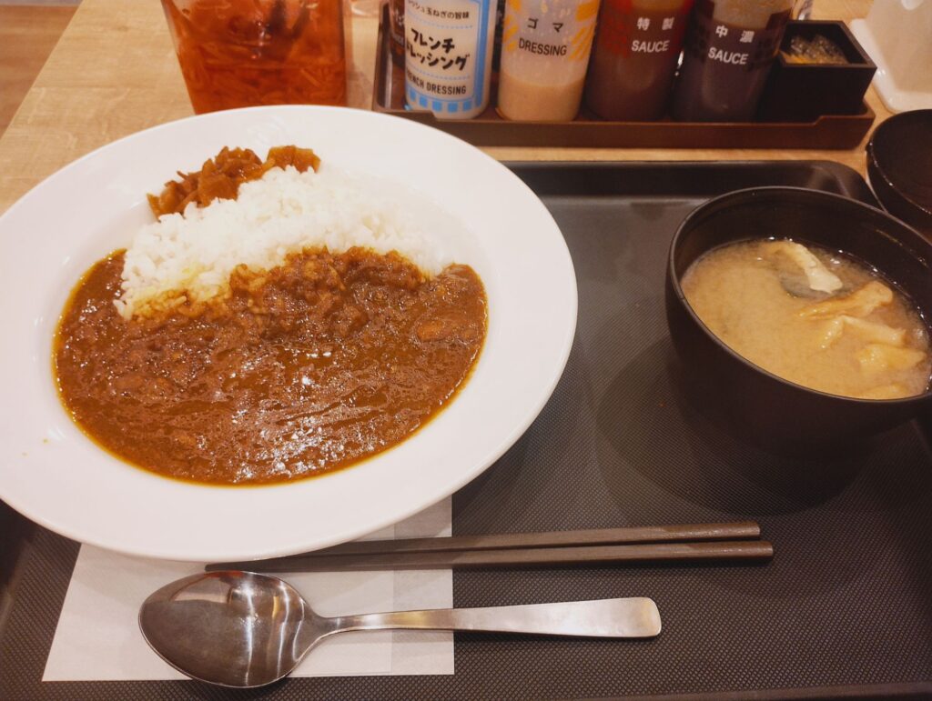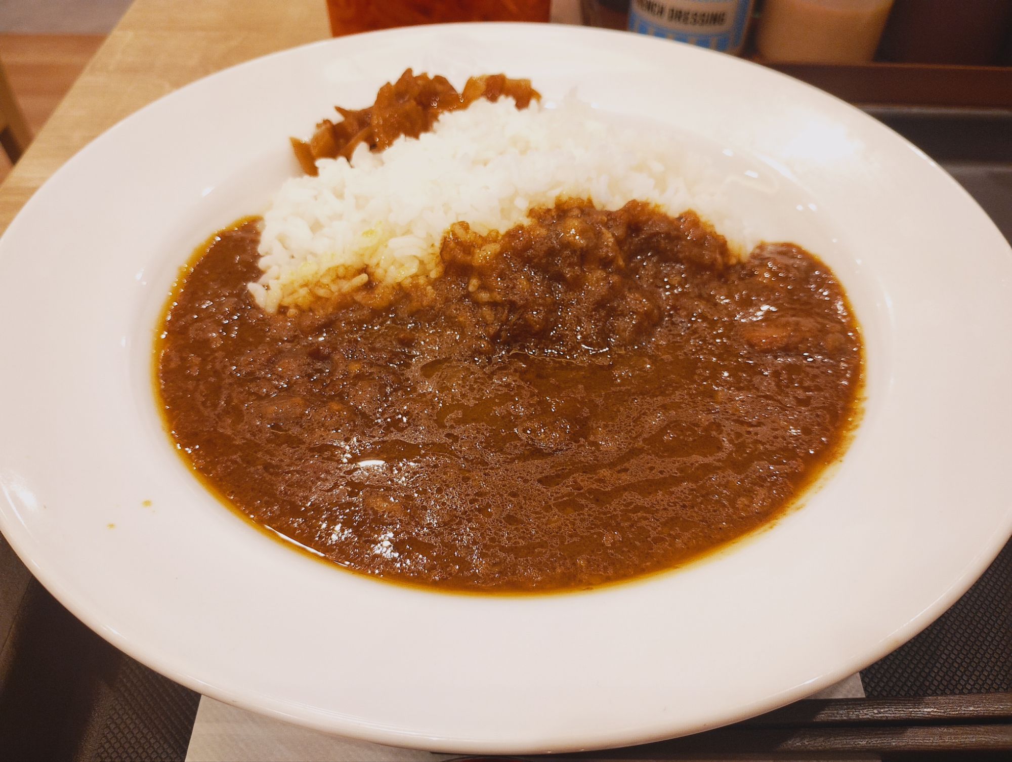 本当は人気だと聞いていた「うまトマハンバーグ」を食べたかったのですが、夜から早朝まではメニューが絞られており、この時間帯は提供なし。牛丼の気分でもなかったため、今回は「創業ビーフカレー」をオーダー。