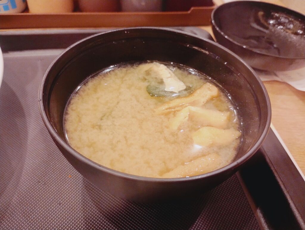 さらに、味噌汁がセットで付いてくるのも松屋ならでは。朝食に味噌汁が欠かせない私としては、このサービスは素直に嬉しいポイントです。