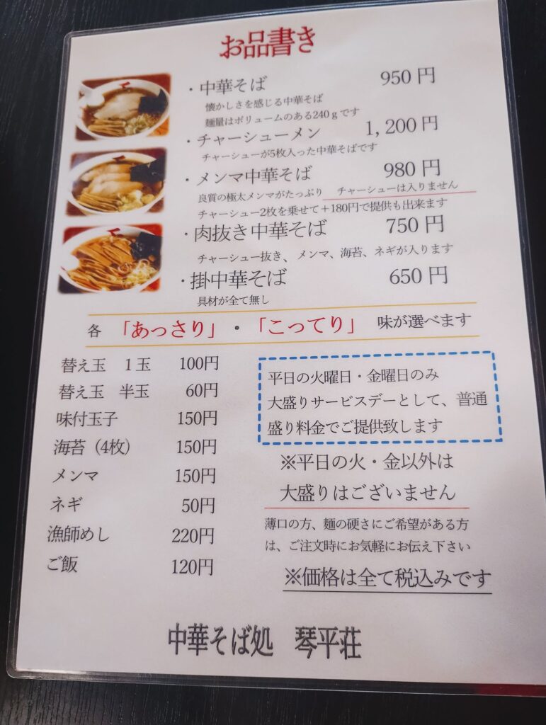 これは、あっさりとこってりの中間を店主が絶妙に調整してくれるメニューで、その日だけの味わいが楽しめる贅沢な選択です。