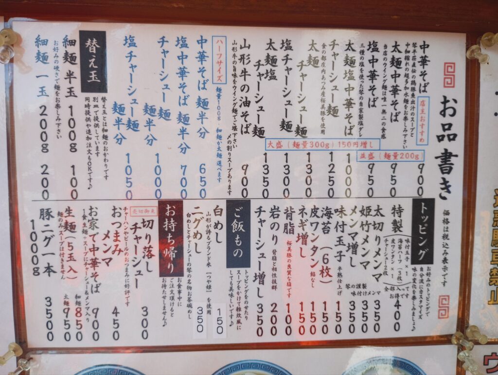 山形県鶴岡市の人気ラーメン店として話題を集めているのが、琴平荘の門下生が営む「琴の」さん。暖簾にはしっかりと「贈琴平荘」と記されており、その系譜の確かさがうかがえます。