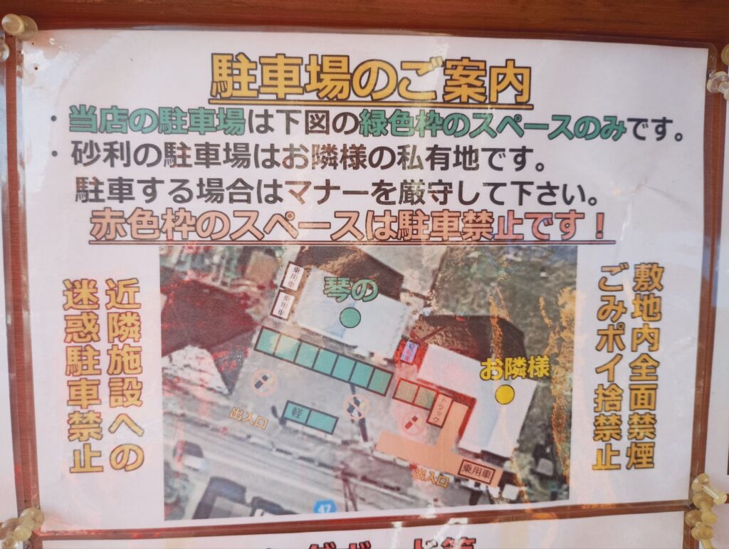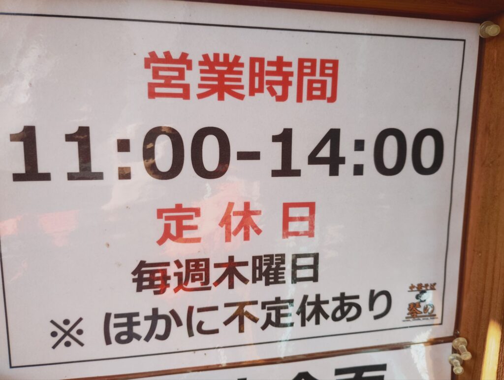 場所は、〒997-0151 山形県鶴岡市羽黒町黒瀬黒瀬202に有ります。駐車場は、店舗前に9台。座席は、カウンター8席・3人がけテーブル1席・4人がけテーブル3席。営業時間は、11:00〜14:00で木曜定休。