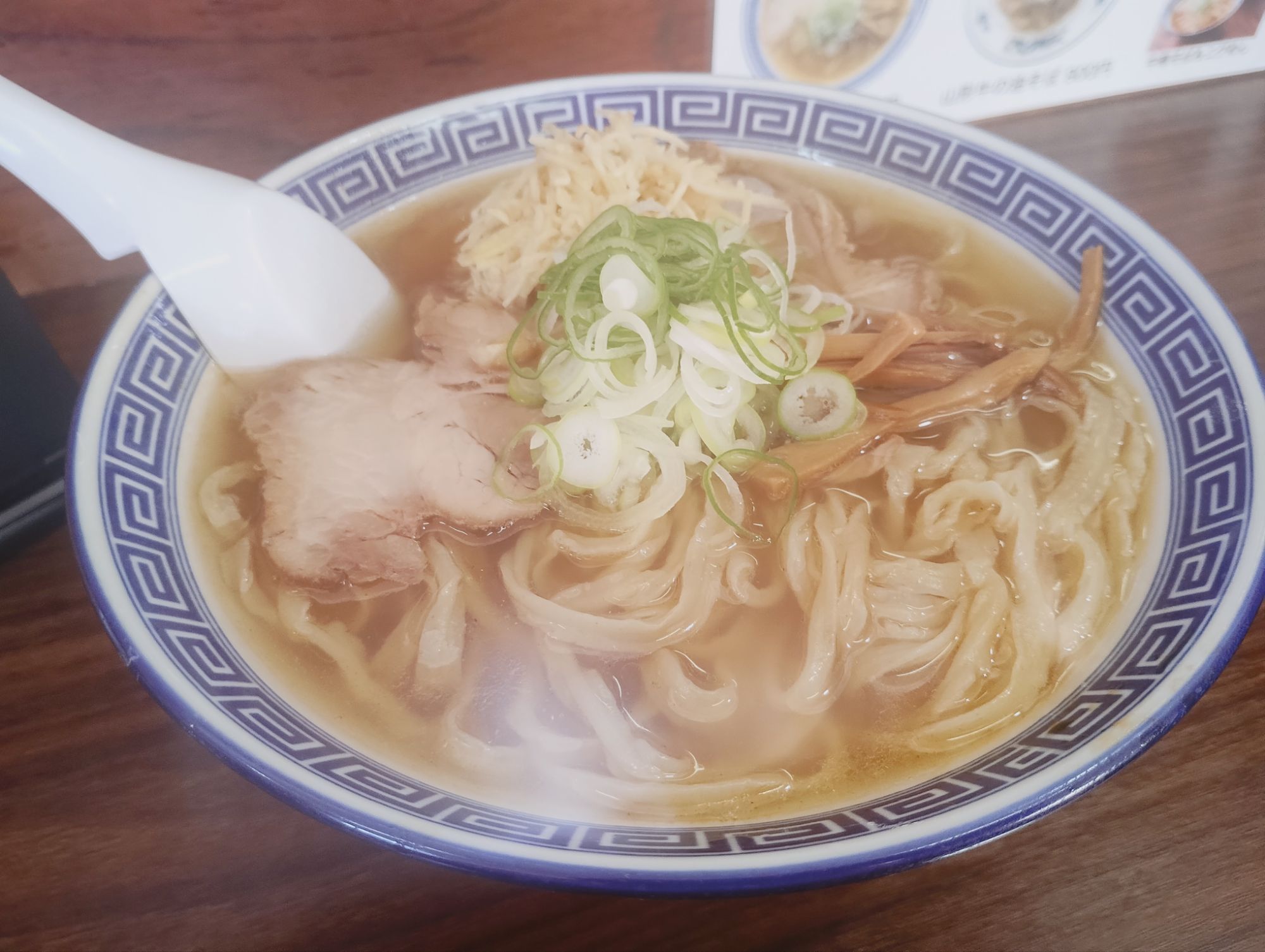 今回いただいたのは、看板ともいえるウイング麺を使用した「太麺塩中華そば」 デフォルトの醤油は以前食べたため、今回はあえて塩を選択。