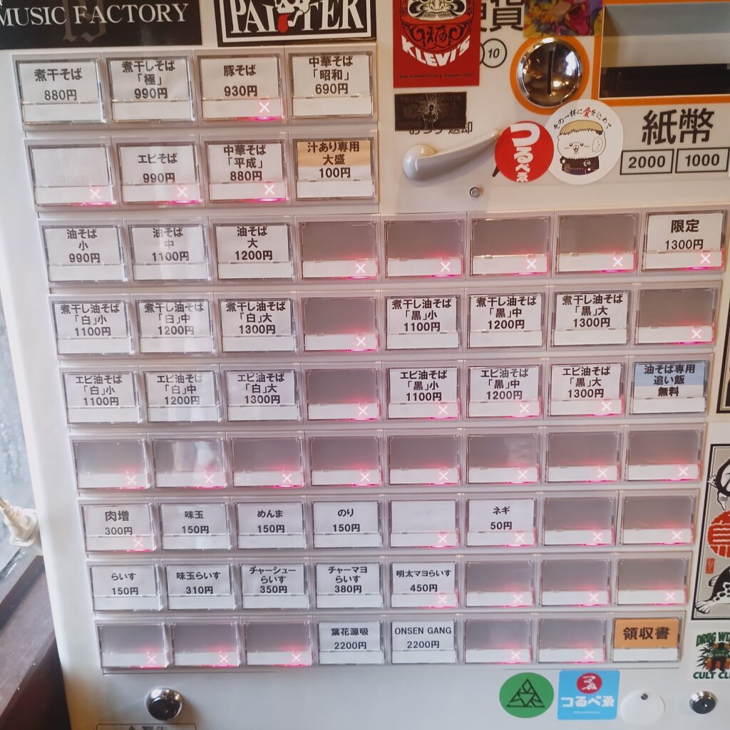 「一球」さんと言えばやはり煮干し。今回も迷わず看板メニューの「煮干そば」をチョイス。食券販売機左上の法則にもバッチリ従いました。