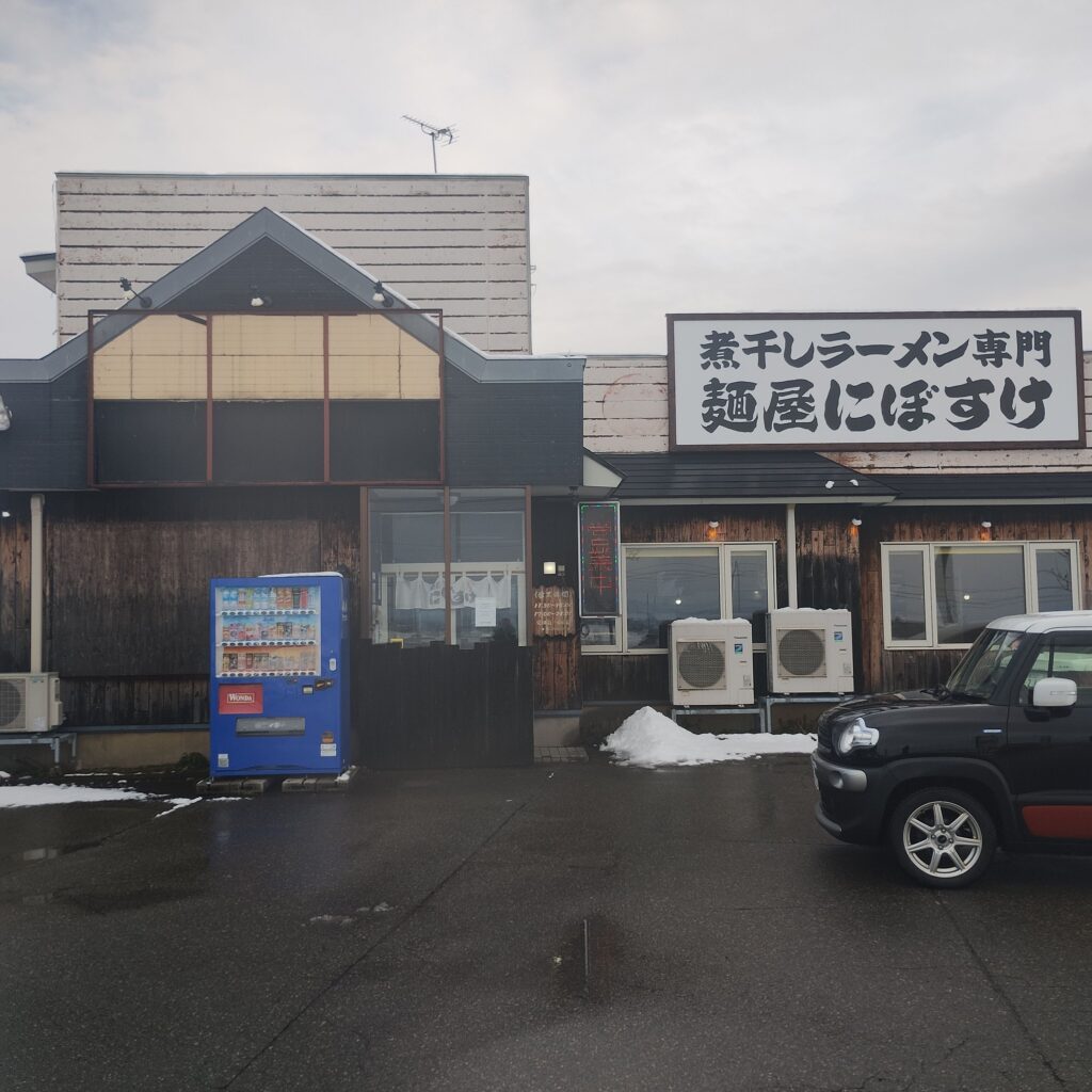 美郷町、国道13号線沿いに店を構える人気ラーメン店「にぼすけ」さん。店名の通り、煮干し出汁がガツンと効いたラーメンが評判で、お昼時には駐車場が満車になり入店を諦めることもあるほどの人気店です。