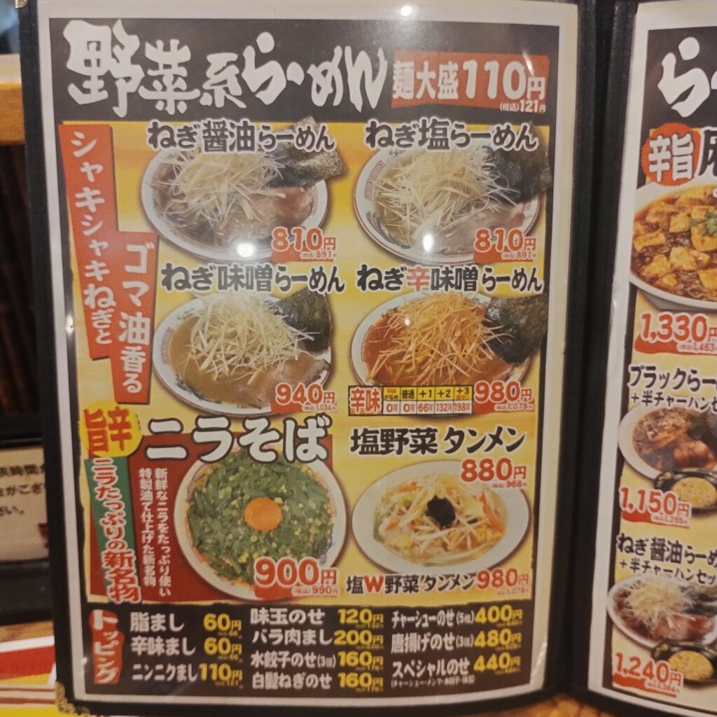お目当ては、SNSの投稿を見て「これは食べたい」と思っていた「ニラそば」 正直、こんなメニューがあったことすら知りませんでした。メニューを見ると、新名物との表記。そう書かれたら、なおさら期待が高まります。