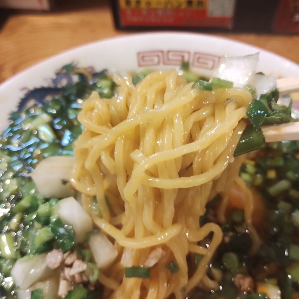 シャキシャキとしたニラの食感と独特の風味も、このスープと相性抜群。麺はおなじみの中細ストレート麺で、スープとニラを程よく絡めながら、存在感はありつつも主張しすぎないバランスの良さがあります。