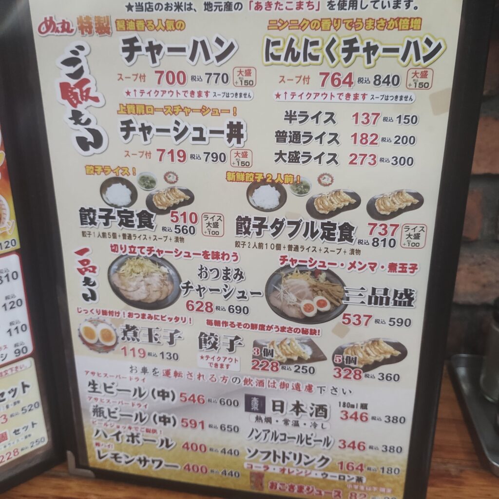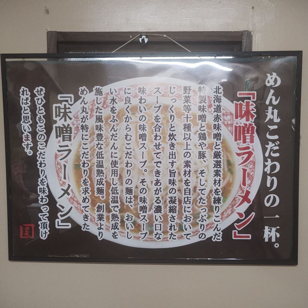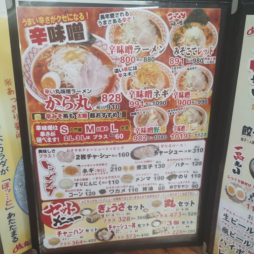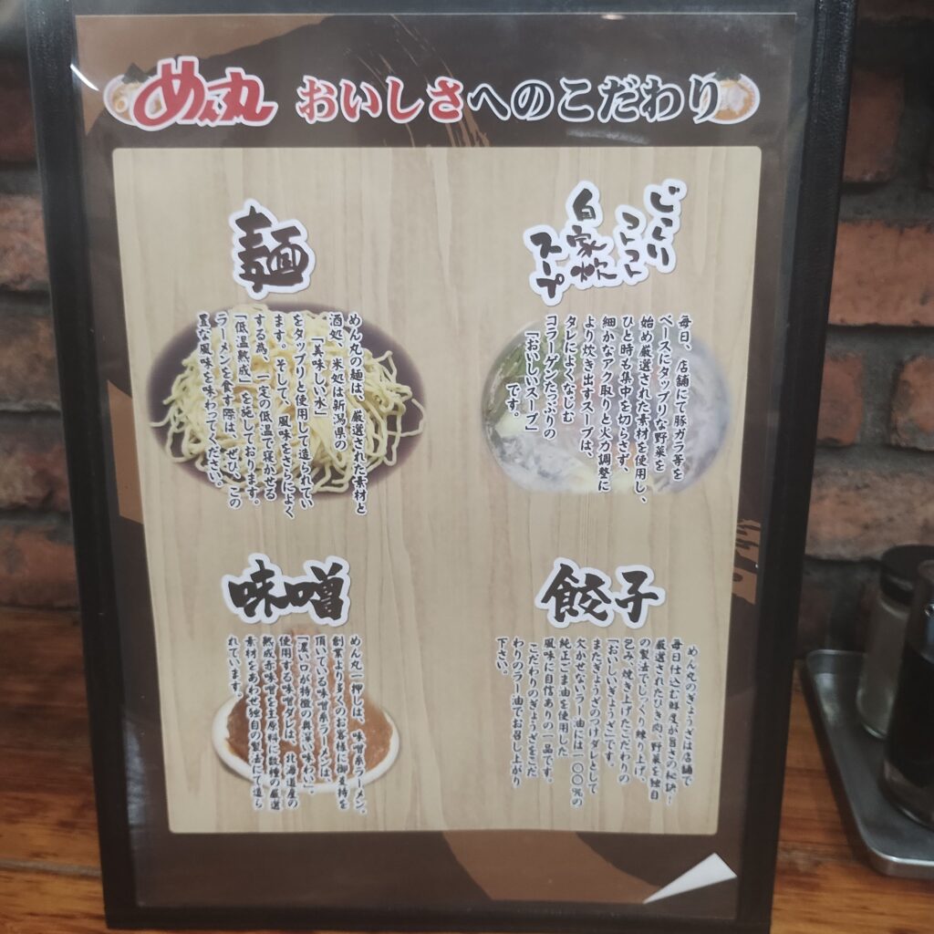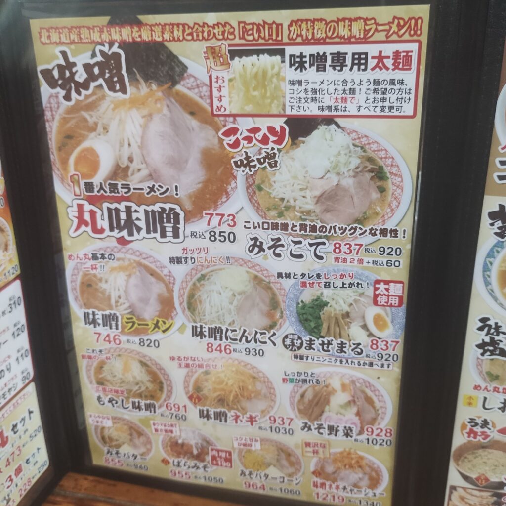 この日はバスケット観戦のあと、少し早めの晩ご飯へ。日曜日ということもあり、目当てのお店は定休日が多く、なかなか行き先が決まらない。そんな中、ふと目に入ったのがラーメンチェーン店「めん丸広面店」さんでした。