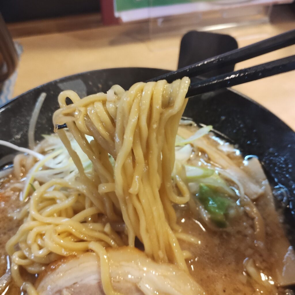 麺は中太のストレート麺。味噌スープに負けない存在感があり、しっかりとした歯応えとコシを楽しめます。噛むほどに麺そのものの旨味も感じられ、スープとの相性も抜群。