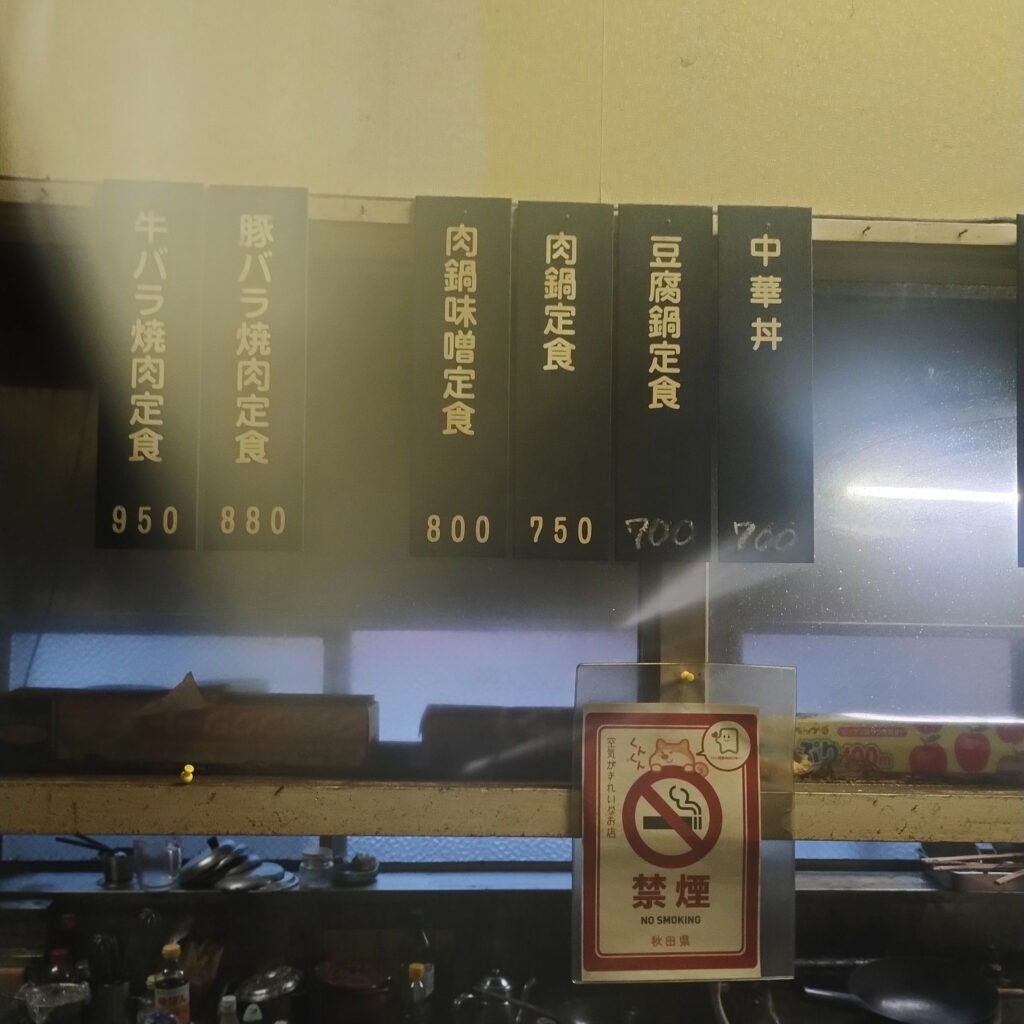 場所は、〒010-0001 秋田県秋田市中通4丁目1−34に有ります。駐車場は、有りません。座席は、カウンター7席・小上がりに4人掛け座卓3卓。営業時間は、11:00〜14:30・17:00〜20:00で月水定休。