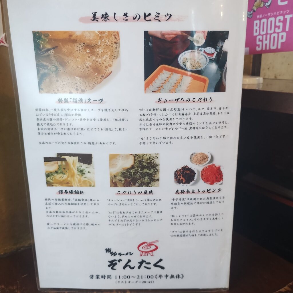 秋田県内では意外と少ない、本格的な博多ラーメンを味わえる店。その一軒が、秋田市新屋にある「ぞんたく」さんです。