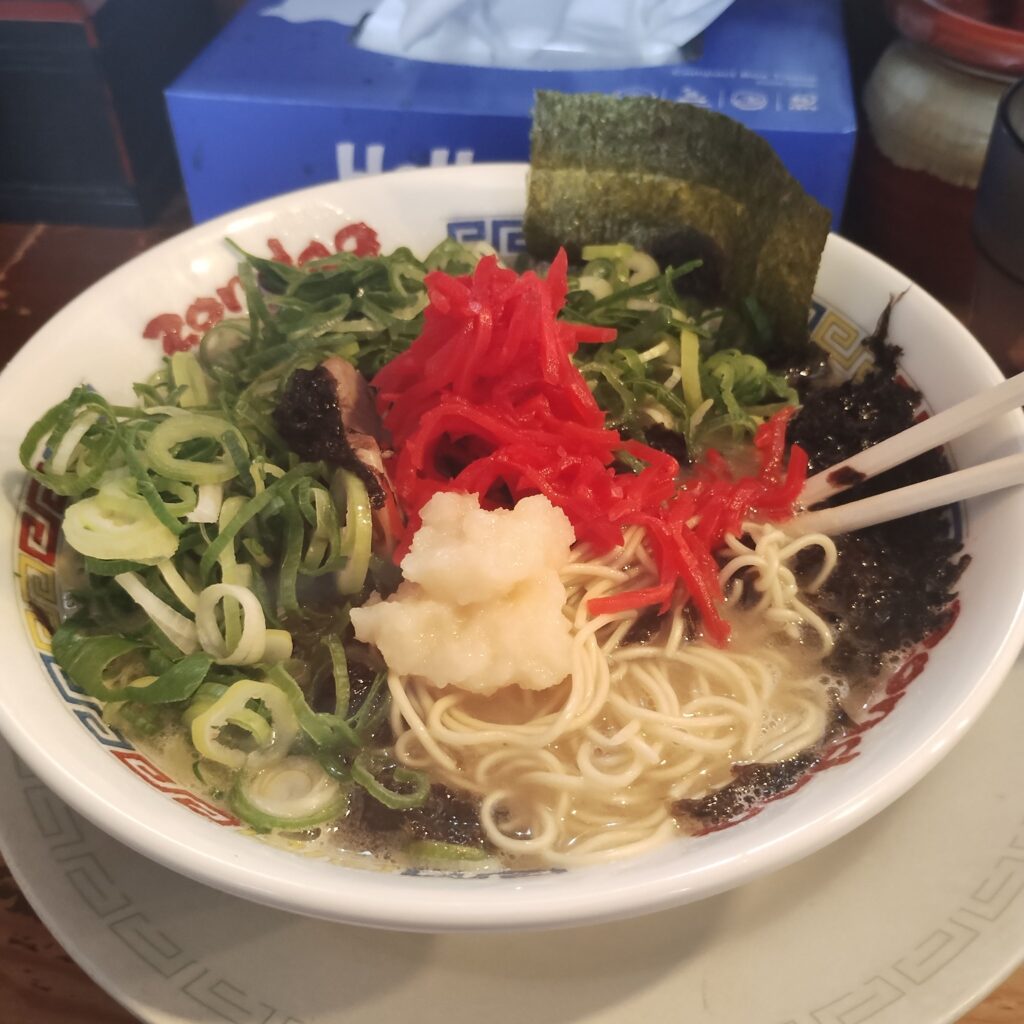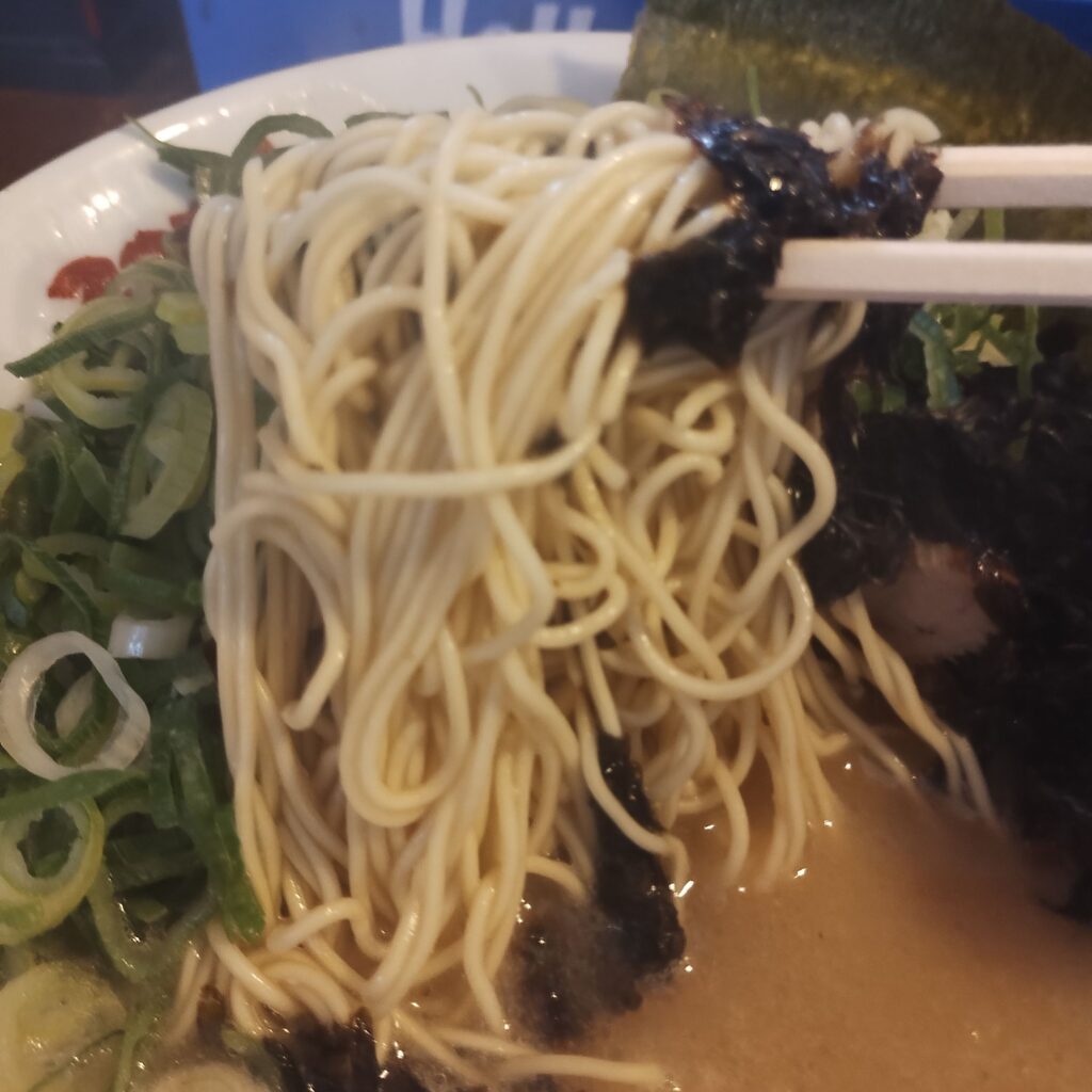 麺はもちろん極細ストレート麺。パツパツとした歯切れの良い食感が、まさに博多ラーメンの象徴。この麺とスープが合わさって、完成度の高い一杯に仕上がっています。