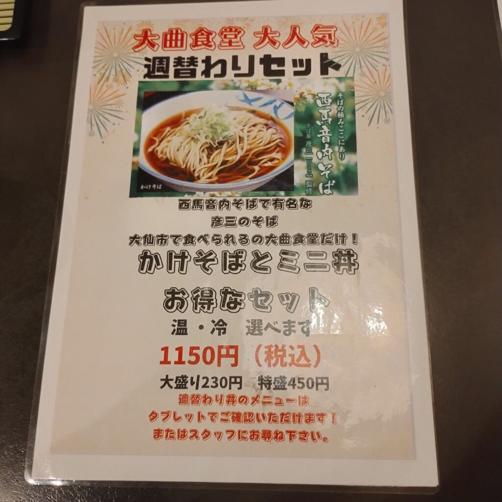 場所は、〒014-0068 秋田県大仙市大曲飯田町22−14に有ります。駐車場は、店舗横に12台ほど。座席は、ボックス・小上がりで多数。営業時間は、10:30〜14:00・17:00〜20:30で不定休。