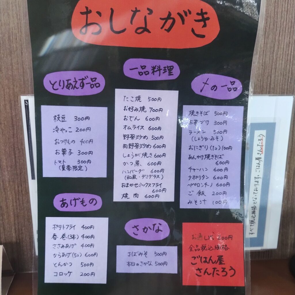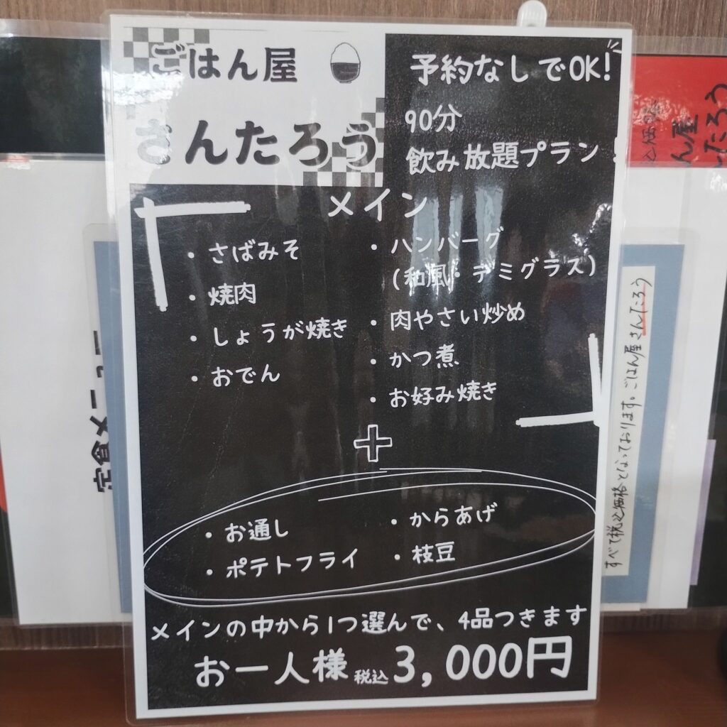 さんたろうさんは、家庭的な味わいと満足感が魅力の名店です。大通りから入り込まないとなかなか辿り着けない立地。しかし、一度訪れれば通いたくなること間違いなしの一軒です。