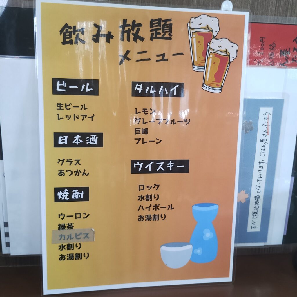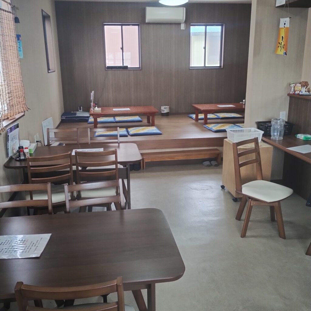 場所は、〒014-0102 秋田県大仙市四ツ屋西下瀬108−4に有ります。駐車場は、店舗脇に3台程。座席は、カウンター5席・4人掛けテーブル2席・小上りに4人掛け座卓2卓。営業時間は、11:00~14:00・17:00~22:00で日月定休。