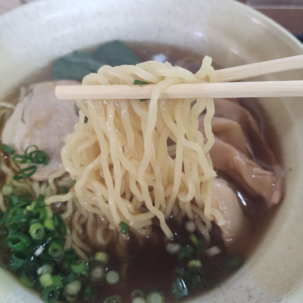 麺は中細の加水縮れ麺。コシはやや柔らかめながら、小麦の風味が感じられ、スープとの相性も抜群。思わず箸が止まらなくなります。