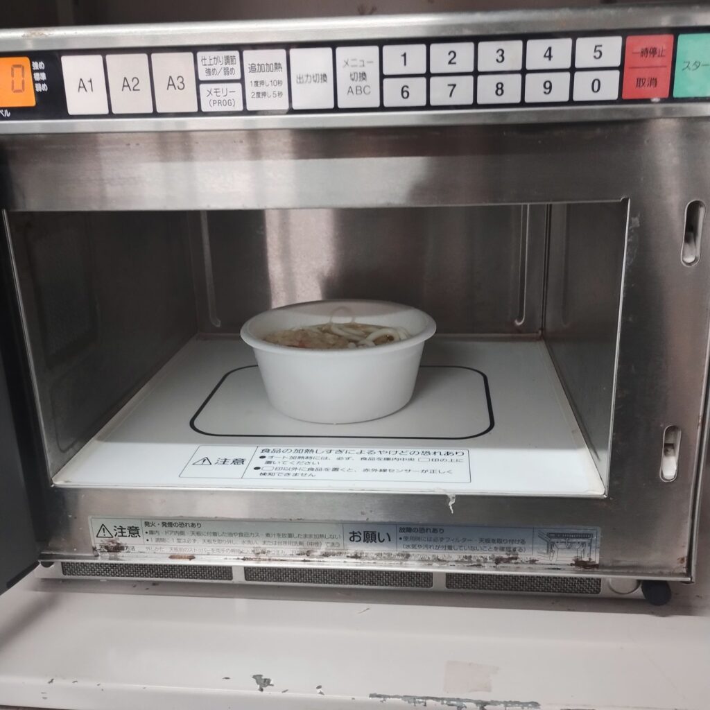 しかし、ここで終わらないのが雲沢ドライブイン流。さらに電子レンジで約10秒温めることを推奨しています。ちゃんとレンジが備え付けられているのも嬉しい配慮です。