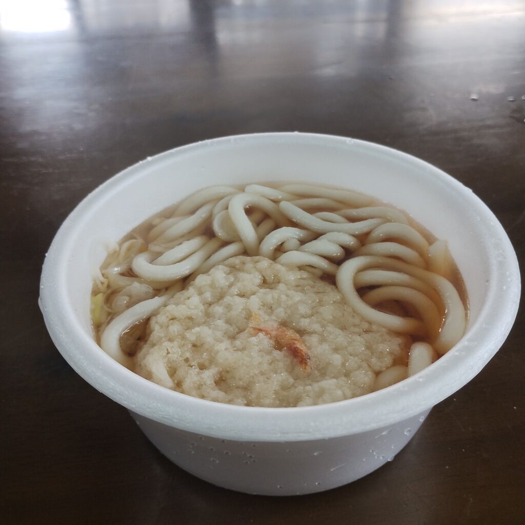 味はというと、かつおと昆布の出汁が効いた醤油スープに、やわらかめの麺。天かすと小エビ入りの天ぷらが乗った、どこか懐かしい一杯。派手さはありませんが、安心感のある味わいです