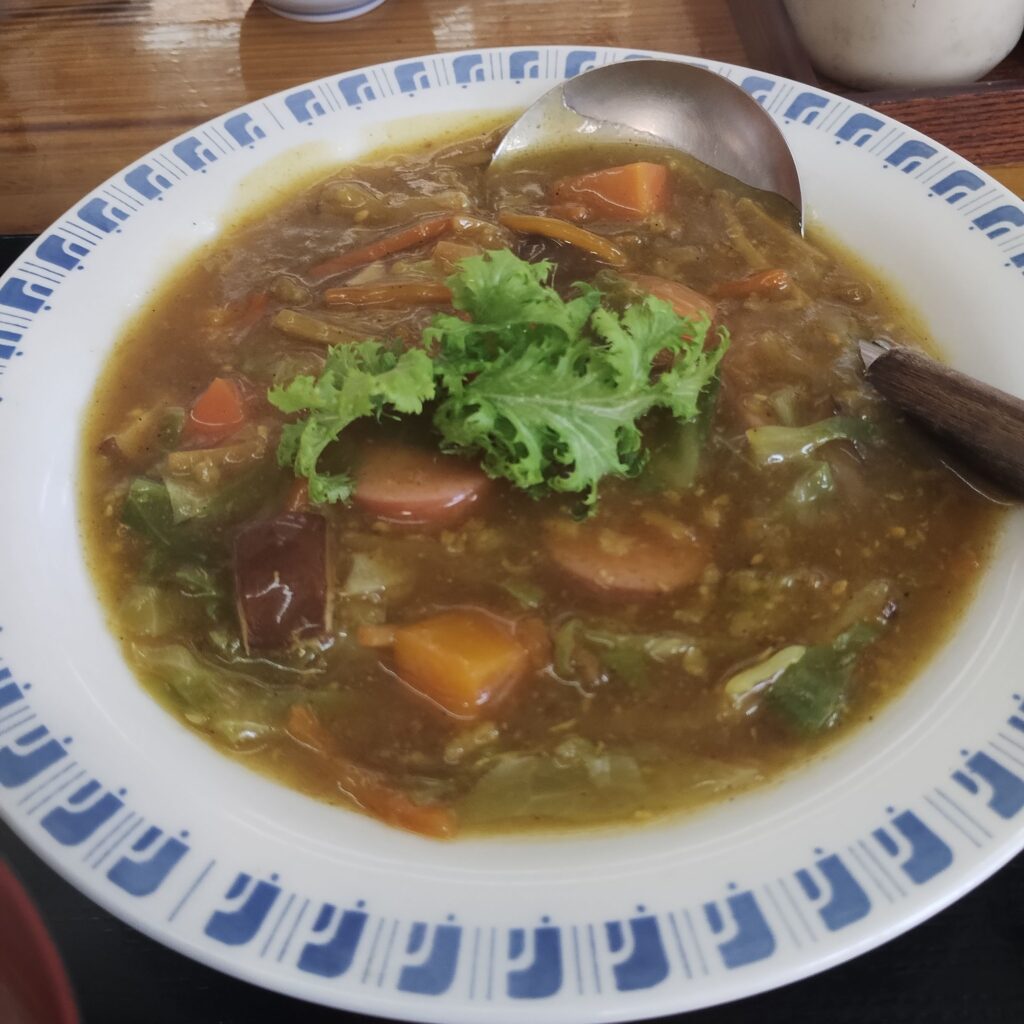 これが大正解。ニンジン、サツマイモ、玉ねぎ、セロリなどの野菜がたっぷり入り、そこにひき肉の旨味が加わった優しい味わい。名前の通りとろりとした口当たりで、薄口ながら野菜の旨味がぎっしり詰まったカレーです。