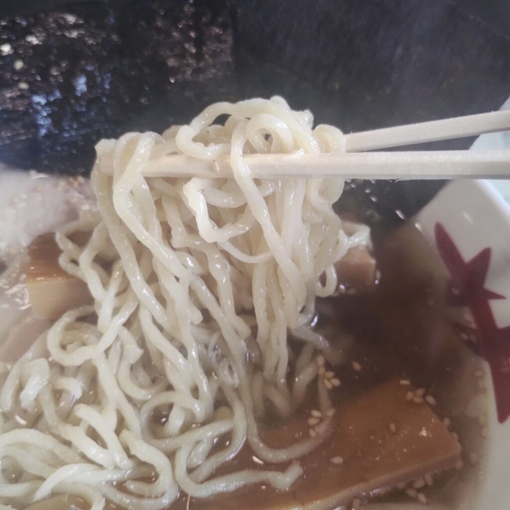 麺はそのスープに負けない存在感のある太縮れ麺。強烈なコシとモチモチ食感の多加水麺で、スープをしっかり絡めてくれます。この麺でなければ、この強烈な旨味のスープには太刀打ちできないでしょう。