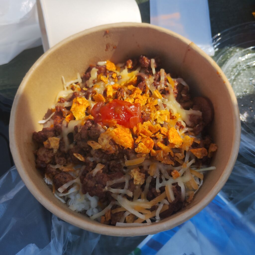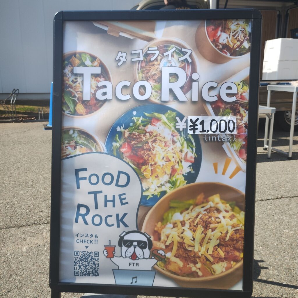まず最初に向かったのは「FOOD THE ROCK」さん。今回注文したのは「タコライス」。私にとっては初訪問のお店で、せっかくなので気になっていたメニューを選びました。