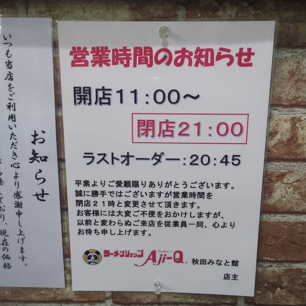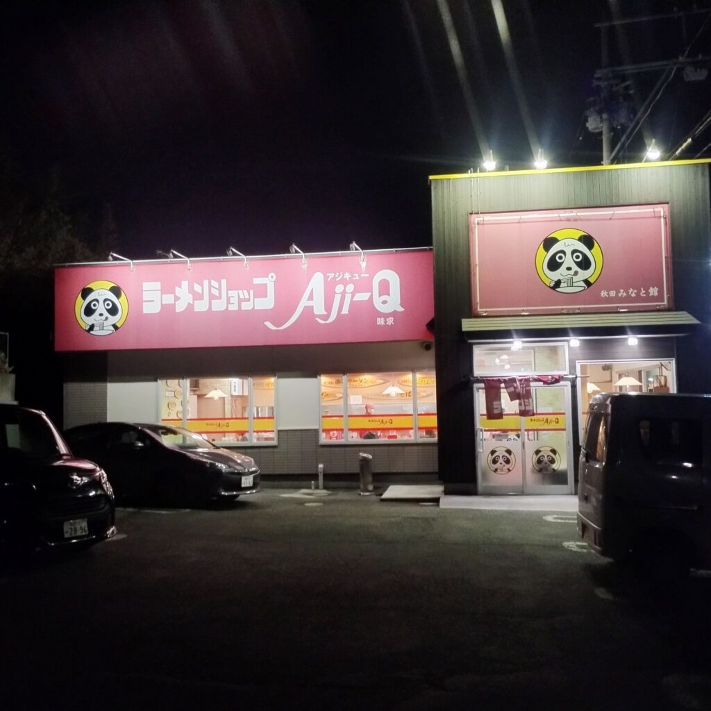 ブラウブリッツ秋田のホーム開幕戦勝利の打ち上げを終え、バスで帰路へ。自宅まではあと角を曲がるだけ…のはずでした。しかし、なぜか感じる小腹の空き。あれだけ飲んで食べたのに不思議なものです。そして気がつけば視界に入ってきたのが「アジキュー 秋田みなと館」さん。