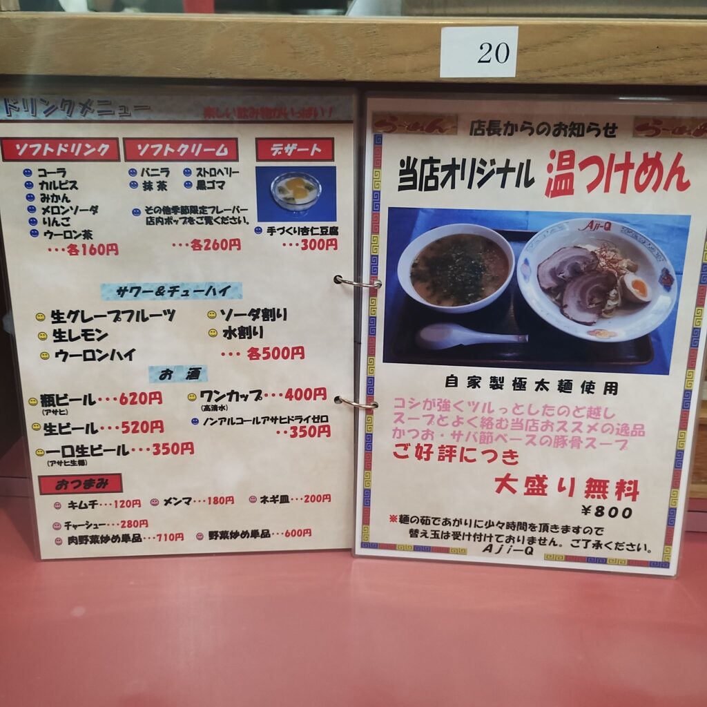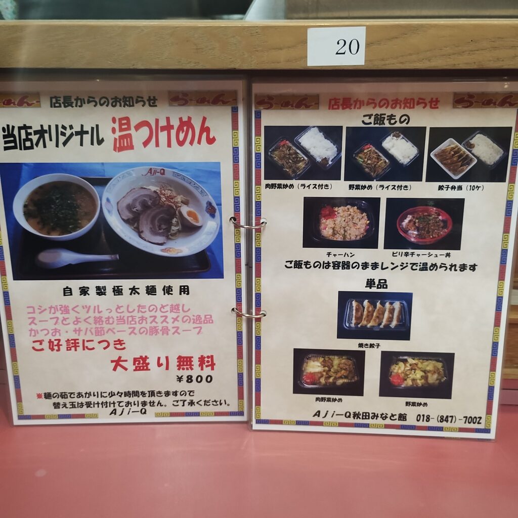 アジキューさんといえば定番は南蛮ラーメン。しかしこの日は、メニュー左上にあった秋田みなと館オリジナル「コク旨とんこつ」に目が留まり、気づけばそちらをオーダー。