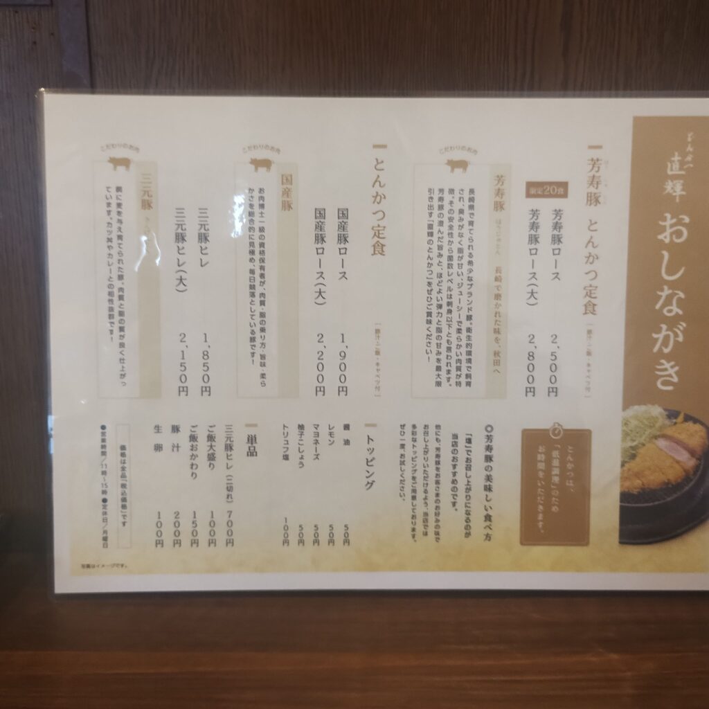 秋田市新屋でとんかつを食べるなら注目の「とんかつ直輝」さん。秋田市でも話題の人気店で、限定メニューの満足度が非常に高い一軒でした。