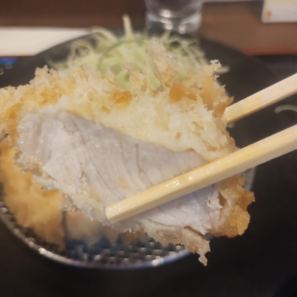 実際に一口食べてみると、衣はカラッと軽やかでサクサク。それでいて、ほんのりとしたモチっと感も残る絶妙な食感。揚げの技術の高さがしっかり伝わってきます。