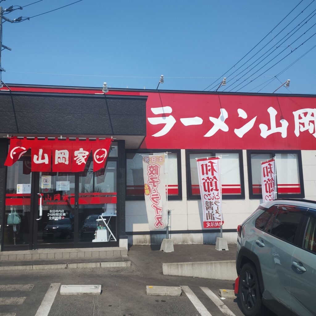 秋田市寺内でラーメンに迷ったら候補に入る「山岡家」さん。24時間営業で安定した味が楽しめる、安心感のある一杯が味わえるお店です。