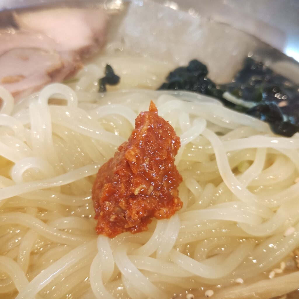 麺はやや細めながらもコシが非常に強く、ツルツル・シコシコとした食感。冷麺らしい弾力と喉越しがしっかり楽しめます。