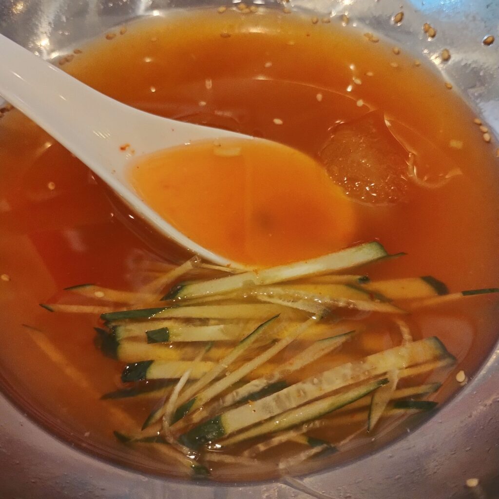 最後はスープときゅうりでさっぱりと締め。冷麺の満足感をしっかり堪能できました。
