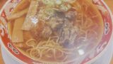 スープは、カツオ出汁のあっさり味・・・と思いきや、豚骨の味も感じられます。チャーシュー代わりの豚バラの煮込みのせいかもしれませんけどね(^_^;) 思いの外、深い味わいです。